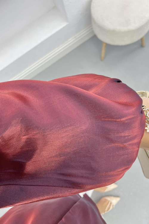 Belted Shiny Jacket Burgundy