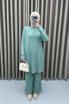 Half Turtleneck Knitwear Suit with Trousers Aqua Green