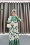 Patterned Viscose Dress Dark Green