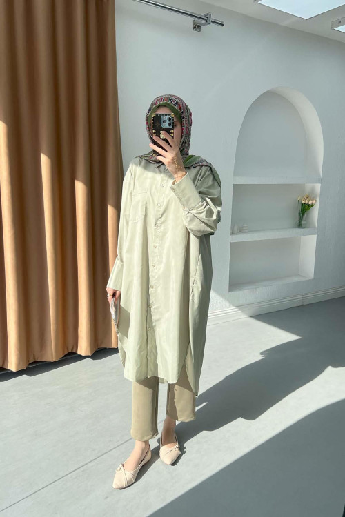 Sare Fashion Back Button Detail Long Shirt Soft Green