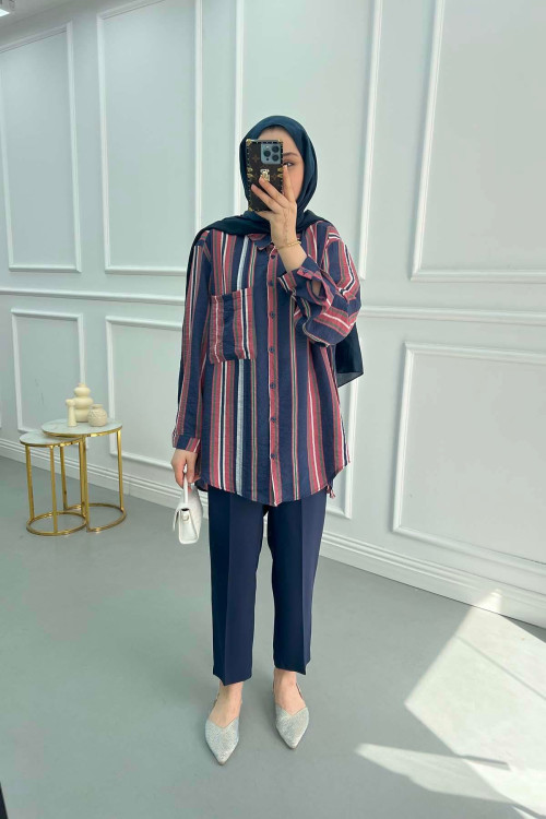 Sare Fashion Striped Oversize Shirt Dusty Rose